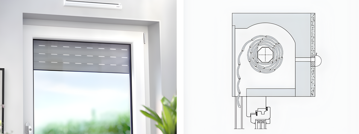 Die Integration von Fensterlüftungsgeräten in den Rollladenkasten bietet erhebliche optische Vorteile, da gesunde und frische Luft zugeführt werden kann, ohne das Erscheinungsbild der Fassade zu beeinträchtigen. Das System kann so in die Fassade integriert werden, dass es von außen nicht sichtbar ist, wodurch das Lüftungsgerät auch im Innenraum aus dem Sichtfeld verschwindet und eine saubere, unauffällige Optik entsteht.