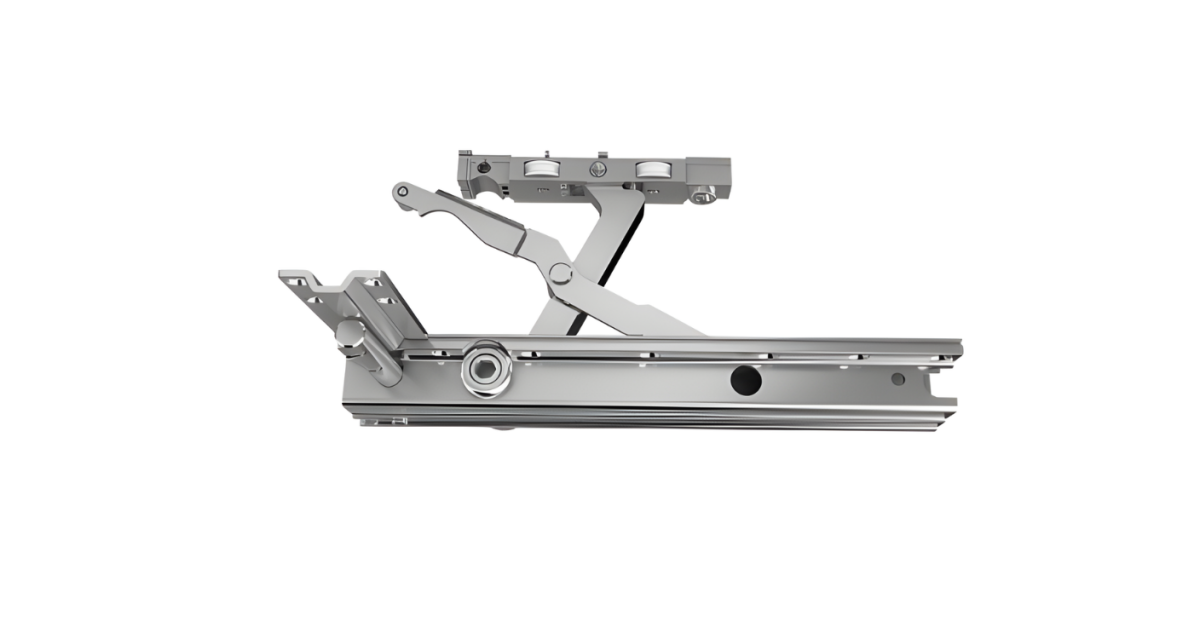 Die speziell beschichtete Führungsschiene sorgt in perfekter Harmonie mit der robusten Laufschiene für eine gleichmäßige und ausgewogene Bewegung des Flügels.