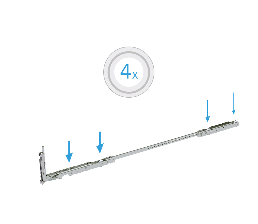 As a cost-effective solution for lower sash weights, the new HS 250 compact bogie wheels, set apart by their lean, compact design, can carry 250 kg sash weight. Their innovative bearing technology, which takes, among other things, the weight distribution of energy-efficient triple glazing into account, provides enhanced smooth running.